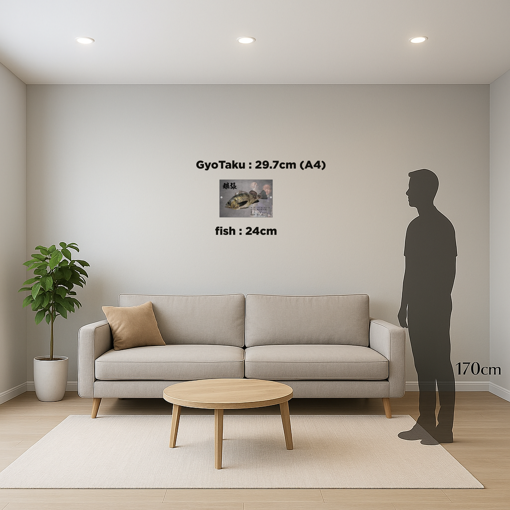 We scale your fish to life size and fit it to A4 / A3 / A2 for easy local framing.
